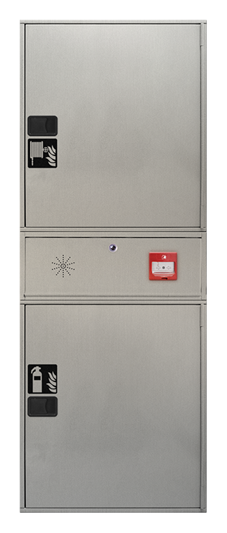 Armario modular intermedio con panel técnico con troqueles para colocar elementos varios como pulsador y/o sirena de alarma (no incluidos elementos de detección)